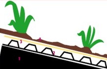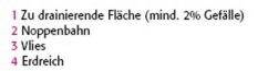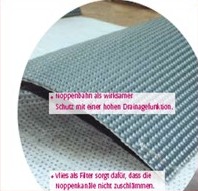 consists of a regularly KNOB MEMBRANE and an added stable filter fleece. This two-layer system protects the seal against earth and roots movements and provides of an effective pressure of the earth.