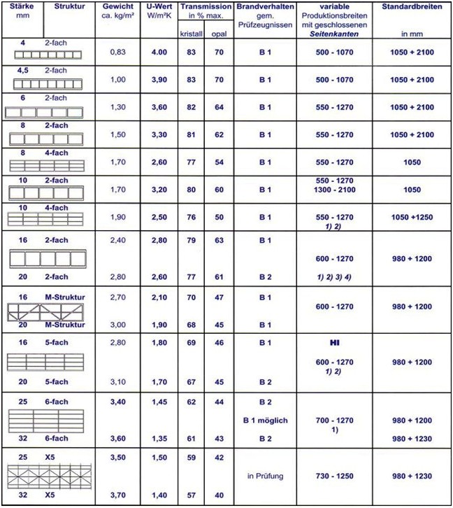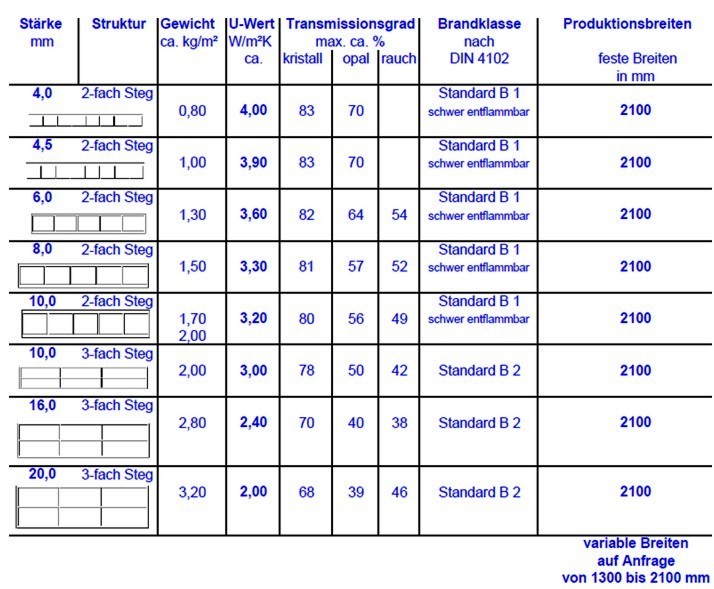 ProduktionsprogrammHKS - Hohlkammerscheiben aus Polycarbonat
